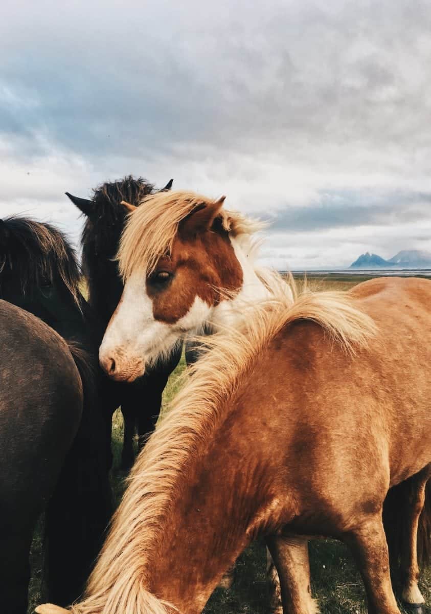 That evening as we were driving to the next campsite, we saw a group of beautiful horses standing near the side of the road and immediately pulled the car over so we could befriend them. I have to admit that I have harboured a fear of these giant creatures for most of my life, as I was bitten by a horse as a child. This incident instilled in me a somewhat irrational, yet very real fear of horses (c’mon, don’t laugh, this is a serious matter haha). So I slowly approached the creatures and cautiously stretched out my hand to touch it’s long nose. *exhales* I did it! The moment my hand fell on the soft, chestnut brown nose, my heart melted a little and I came to understand why Icelandic horses were the most magical creatures in the world.