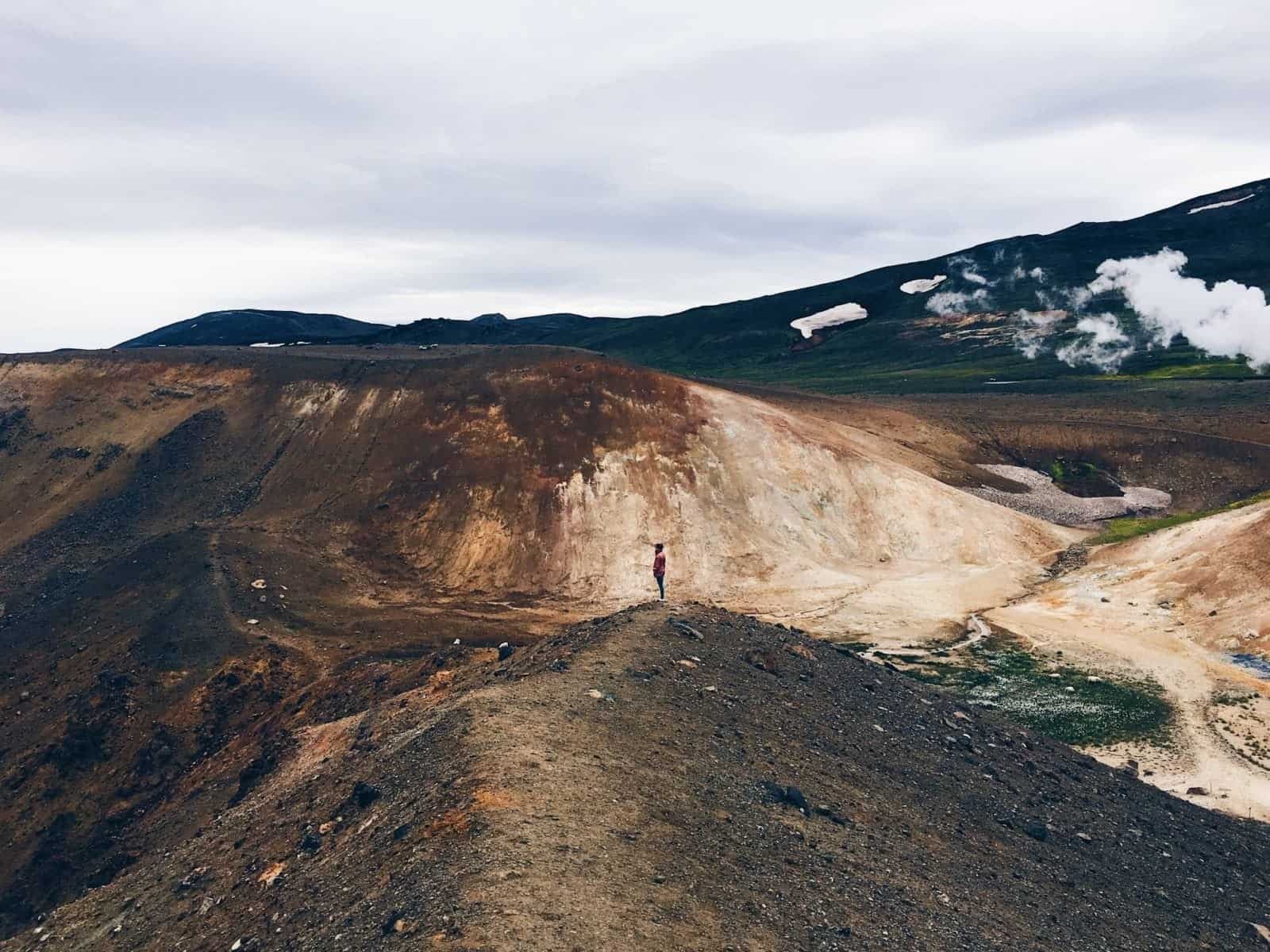 After exploring the outskirts of Reykjavik we ventured to Reykjadalur Valley to go to the hot springs river. I had never experienced something like it before; with the wind and rain gaining strength as we hiked through the mountains ridges, I thought I would be swept up and blown of the cliff edges. We had arrived around 9pm with camera in hand and hiking for over an hour (with many photo stops), we finally made it to the hot springs. Now, the challenge of removing the thousand layers of clothing that was keeping our bodies warm and getting into our swimsuits. The steaming hot spring, called us enticingly in, and after the count of three we quickly removed our warm outer shells and carefully ran into the springs. Sweet relief! It was if the hot water sizzled against my icy skin as I immersed my body into the steaming waters. About an hour had passed and the sky began to darken, we knew it was time to venture back to the car and search for a campsite for the night. Again, on the count of three we jumped out of the warm water and into the wind. My goodness it was cold! It was as if the wind wrapped itself around every part of my exposed skin as I tried to dry my body with my small camping towel. On the hike back, we decided not to stop for photos, fear of becoming an icicle. A few members of our group even decided to jog back to the cars as the thought of a warm dry place with no wind became ever-stronger.