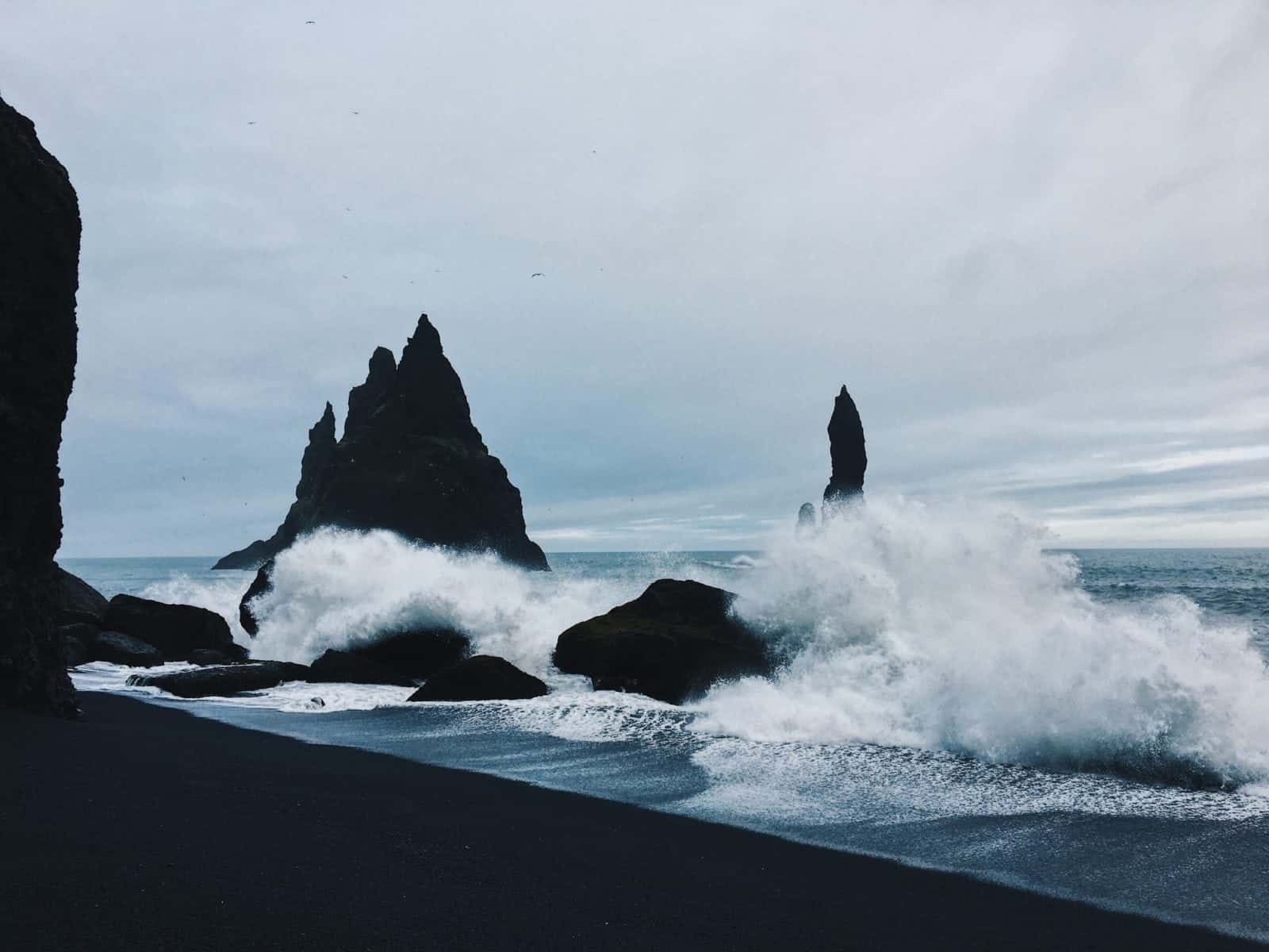 I will have to be honest and say that the Southern region of Iceland absolutely blew my mind and I now know why so many people just go to the most famous landmarks in the South. One of my most favourite locations we visited was Reynisfjara beach near the village Vík í Mýrdal, which is famously known for its’ stark black shoreline. Immediately as we stepped onto the black beach, my heart was thrown into a shrill of excitement as I watched the foamy white waves crash onto the deep black floor and recede until a larger swell overtook the previous shoreline. This place made me feel as if I had stepped into a world that could only be designed by imagination in a story book.
