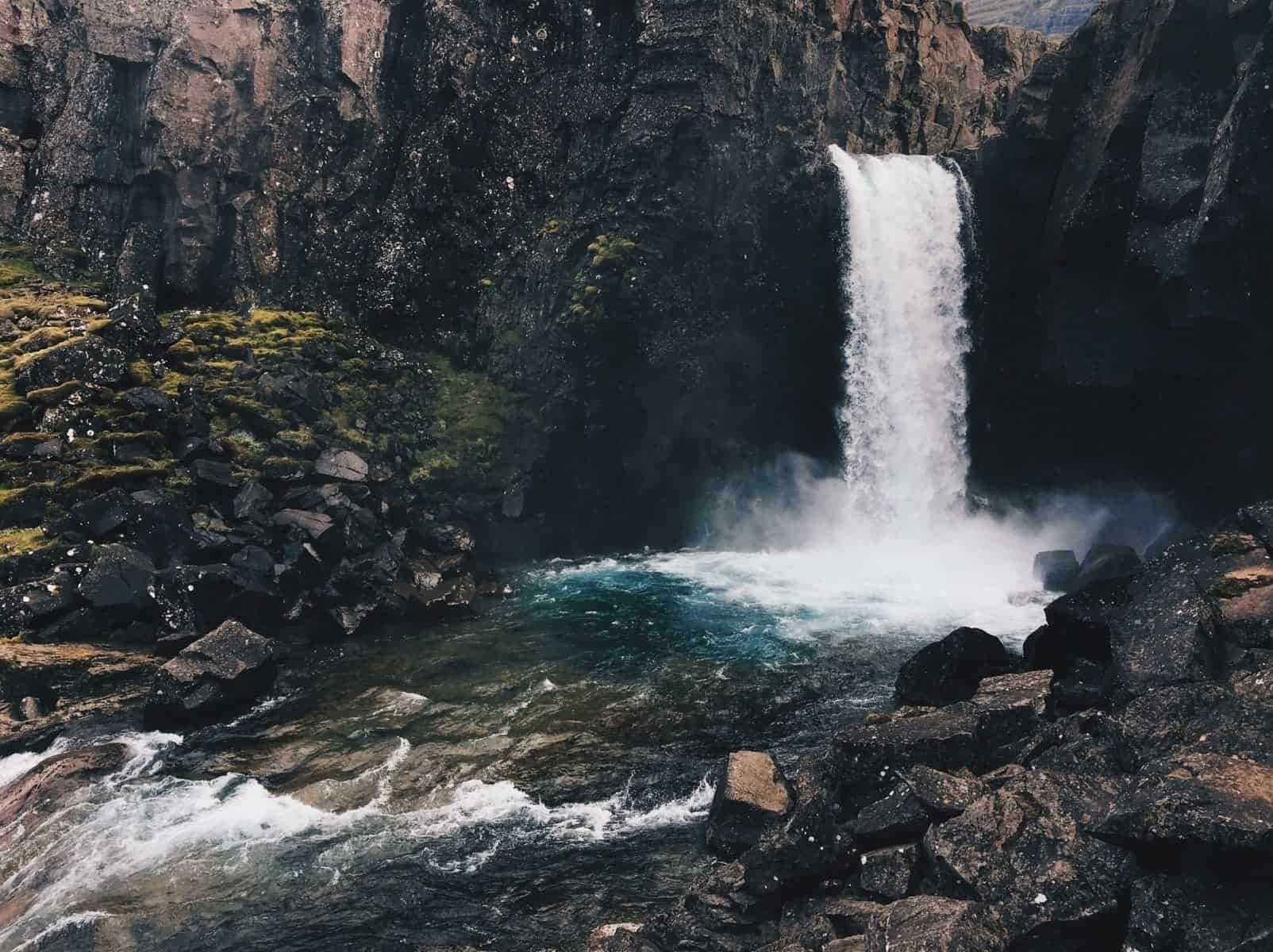 That day we visited several, incredible and well known locations (Gullfoss Falls, Geysir Strokkur) and ended up at this incredible waterfall in a semi-hidden location in Brekkuskógur, where we squelched through a kilometre of mud until we were met with the most vibrant ice blue waters I had ever seen in my life. I had left my camera in the van to dry out, praying that it would work again. Standing in front of this waterfall, I was continuously taken aback with it’s sheer majesty and beauty, however the moment was tinged with sadness as all I wanted to do was take a photo on my ‘real’ camera, rather than my iPhone. But I knew there was nothing much I could do, so I sucked it up and got my iPhone out. On returning to the van, I looked back on my iPhone photos and after some quick editing I was somewhat surprised at the results. “Not so bad after all” I thought to myself, as I tried to pluck up the courage to smile at the memory of the beautiful nature we had just witnessed.