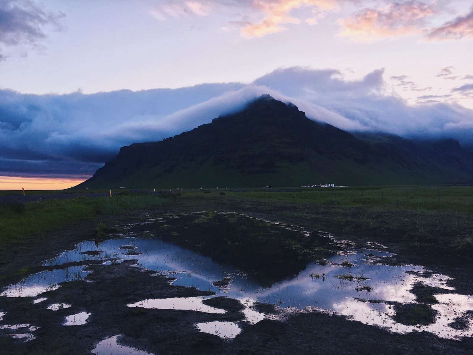 The next few days felt like blur as we made our way to the Eastern region; driving the most incredible stretches of road, witnessing the sun set and rise while the sky filled with pastel shades, watching the moon rise in front of us while the sun set behind us, hiking to craters filled with vibrant waters, mountainsides absolutely covered in purple flowers (nootka), visiting waterfall after waterfall, and constantly being taken aback by the stunning beauty that surrounded us at every turn. I was finally becoming more okay about the fact that my camera would not fix itself before the end of my trip and was becoming increasingly grateful for the images my iPhone was able to capture.