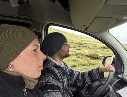 The next day, going up along the coast, they found a sheep! These were very easy to find, as they were right in the middle of the road most of the time! Waking up in that Camper van was amazing, all the time. Janie’s face could tell a lot when she would wake up in the morning. She had, what is called, a camping face.