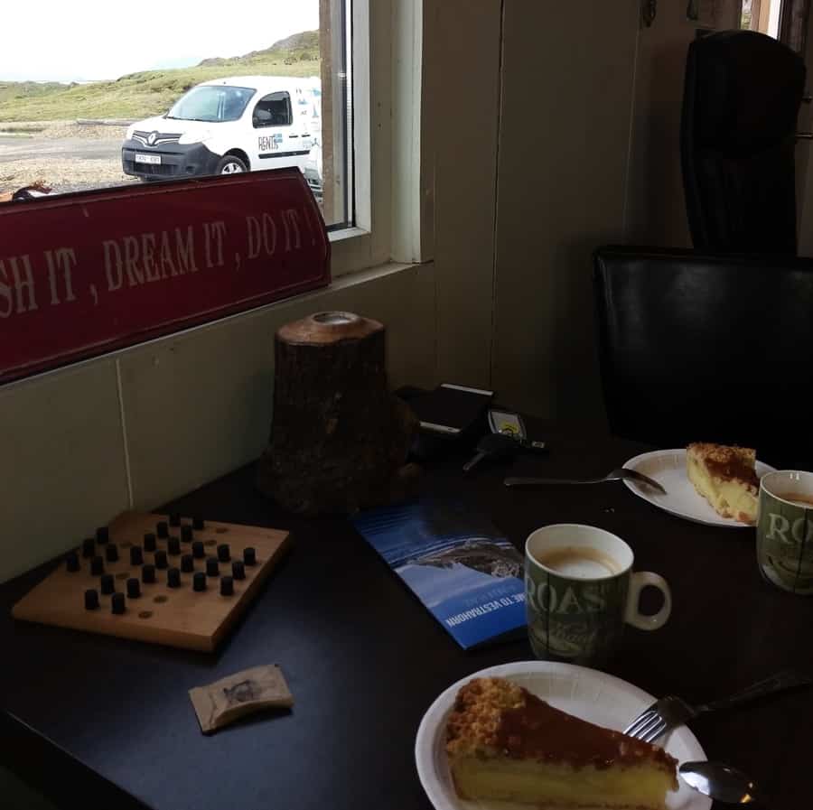 We decided to have a Viking breakfast at the Viking Cafe, viking cappuccino and a viking cake and we started to drive again to the north.