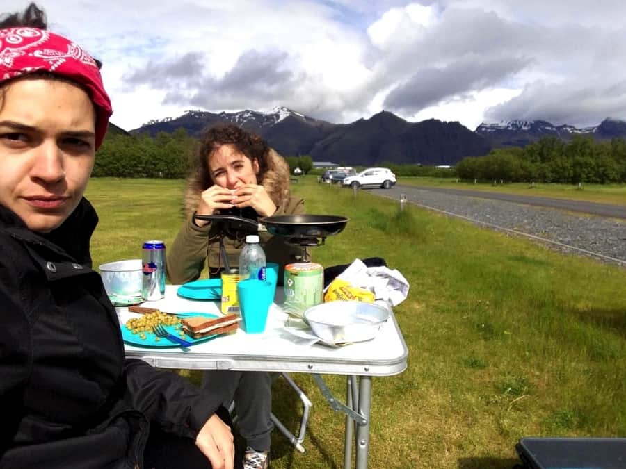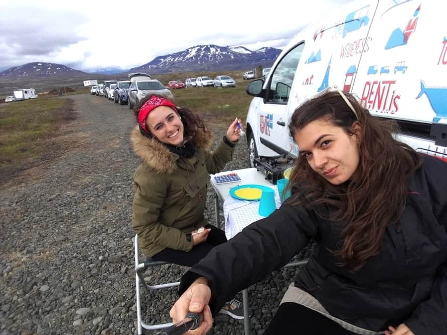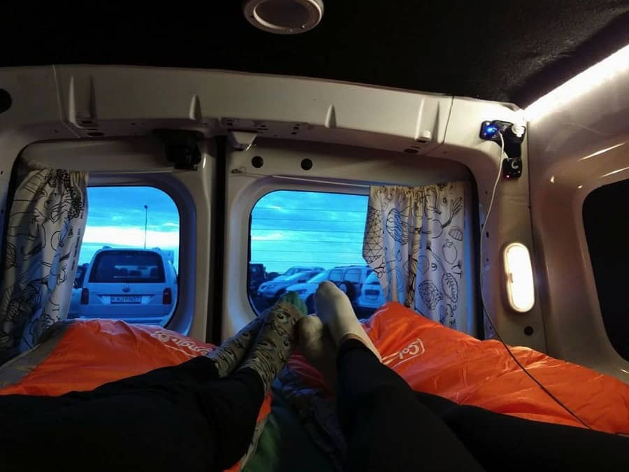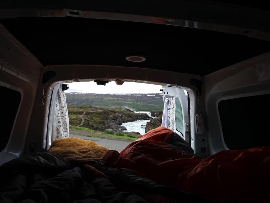 Renault Kangoo from Rent.is in Keflavik Airport .The guys at the rental were very funny and I think we appeared a little bit lost about what we were doing but we were really excited about that new experience. We were very surprised to see that the van had everything we would have needed! The fridge for our beers, the camping gas for our Italian plates and a very relaxing bed where we slept like angels for our first night.