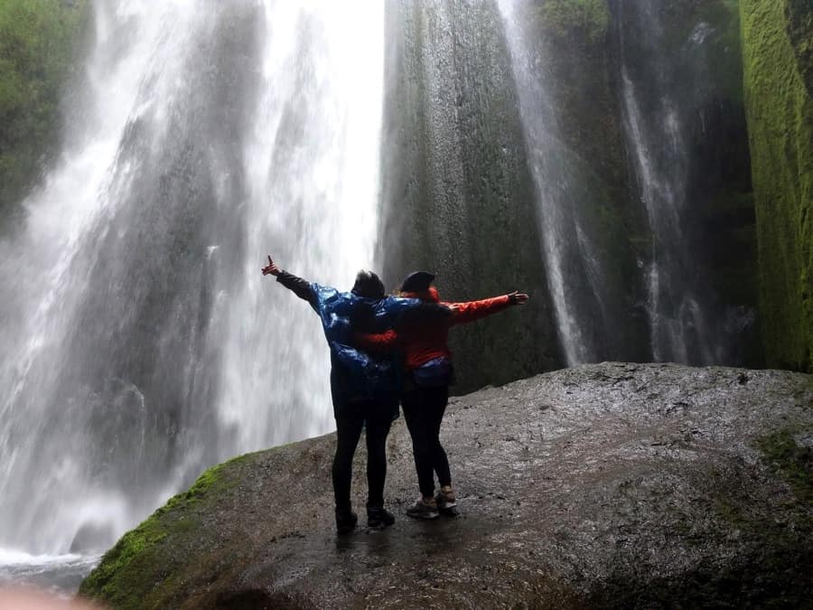famous waterfall of the Island. We have been lucky for some minutes as we could enjoy the rainbow on it : it was like a cartoon, the perfect set for an unicorn research.