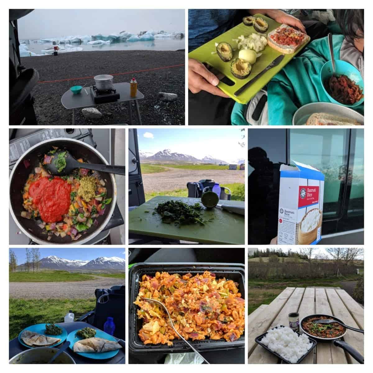 We both loved the sheer number of waterfalls throughout the drive around the island and each one was unique in someway or the other. The cute little lambs and friendly horses makes it even more fun. The first couple of days, we were in a hurry to get our day started on time. We would be tired in a few hours due to the lack of proper lunch. We tried to compensate by snacking on random stuff. We quickly realized that spending a few hours in the morning to prepare food for the day will help us retain energy throughout the day. Being vegetarians, we were not sure how expensive/available food would be. So, we decided to make our own. Soon, we started enjoying cooking outdoors especially right in front of beautiful lagoons, mountains & waterfalls. If you decide not to cook, most places has at least one vegetarian option.