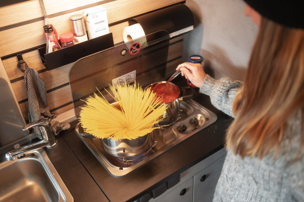 Le tout nouveau Crosscamp Flex est une option de luxe idéale pour les voyages en groupe. Le camping-car est spacieux et équipé de tout le nécessaire pour un voyage confortable. Avec deux sièges à l’avant et deux autres à l’arrière, ce camping-car peut accueillir deux personnes confortablement. Ce nouveau camping-car dispose d’un espace de vie avec une table, qui se transforme en lit pour deux personnes. La tente escamotable cachée permet de créer un deuxième lit pour deux adultes supplémentaires. Il y a un coin cuisine intégré, ce qui vous permet de cuisiner à l’intérieur et de faire la vaisselle dans l’évier. Le camping-car offre de multiples options de rangement, ce qui permet de ne pas se soucier de l’espace. Le Crosscamp Flex est parfait pour deux personnes, offrant la possibilité de camper à tout moment grâce au système de chauffage intégré pour les nuits froides, à l’électricité 12V et à la possibilité d’utiliser la prise électrique du camping. Chargez vos appareils alimentés par batterie à l’aide des prises 230V ou chargez vos appareils mobiles à l’aide des prises 12V. Choisissez le Crosscamp Flex comme domicile temporaire en Islande.