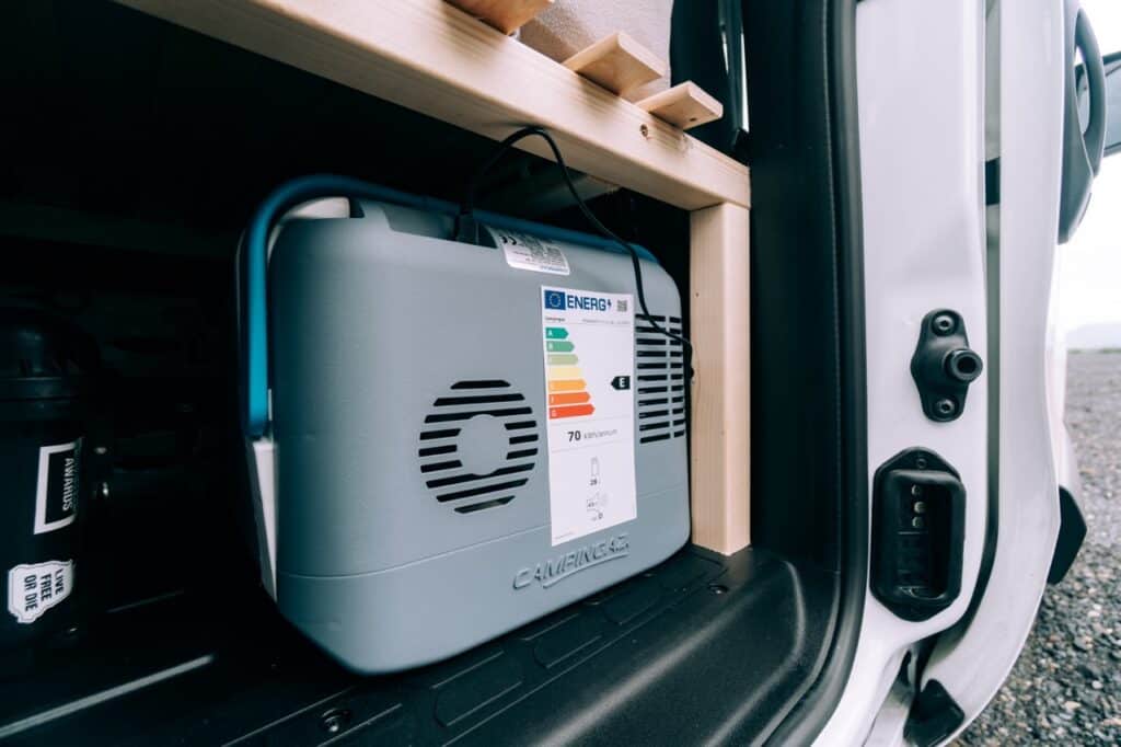 Inside there is a compact storage area, spacious enough for your bags as well as any groceries. The camper comes with all the kitchen essentials you might need, a table, and chairs, allowing you to cook and eat under the stars. The Fiat Doblo Maxi is equipped with 230V electricity which requires the camper to be plugged into campsite electricity. The 230V power allows for the charging of battery-powered devices such as mobiles, computers, or camera equipment! The camper has a portable heater to keep you warm during chilly nights and a portable fridge to keep your food cold. Choose the Fiat Doblo Maxi for your journey through Iceland, a reliable, and budget-friendly companion that promises to make your trip both memorable and affordable.