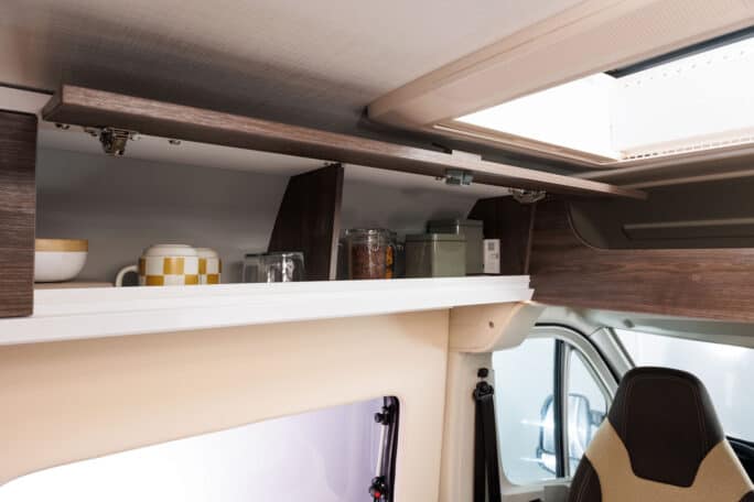 The van has a Combi heating/water boiler for cold nights. This is controlled using the electrical panel located above the entrance. Motorhome 3 also offers an electrical hookup at campsites, providing 230v powered plugs.