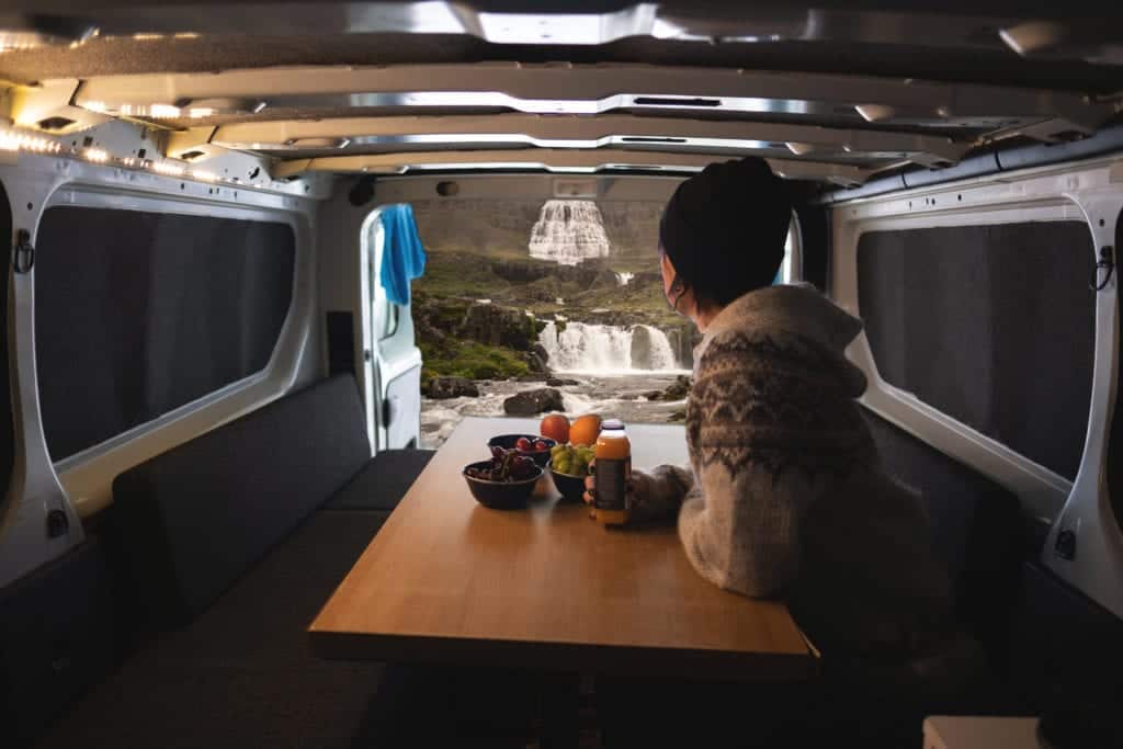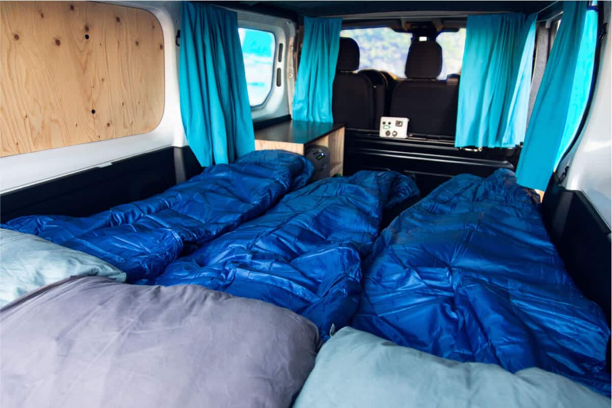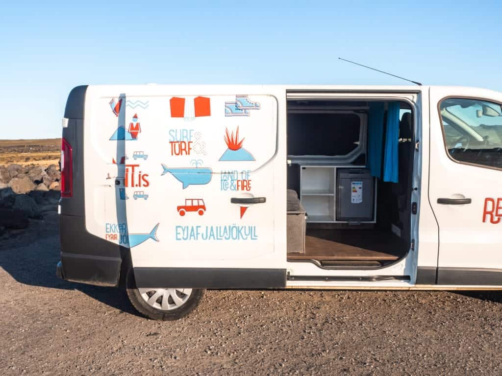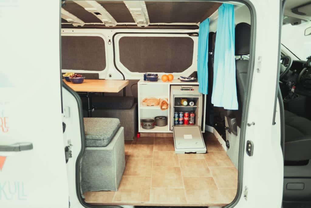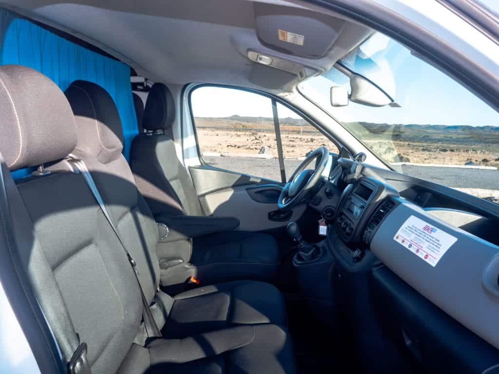 The Renault Traffic 3 offers an excellent option for adventures in Iceland. It’s the perfect mid-size camper. The camper is equipped for three people and is surprisingly spacious. The Renault Traffic 3 has a seating area and table inside that’s perfect for breakfast or dinner on rainy days which then conveniently converts to a comfortable bed for three. The camper has 12V electricity that allows for the charging of mobile devices and has all the essentials you might need such as kitchen supplies, a fridge, bedding, and a Webasto heating system that will keep the camper nice and warm during those chilly Icelandic nights. The Renault Traffic 3 is a great affordable option if traveling as a couple or as a group of three.